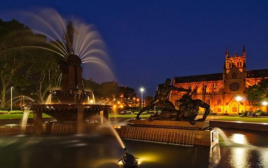 В австралийском Сиднее тоже есть Гайд-парк, и в этом самом парке находится фонтан Арчибальда, считающийся лучшим в стране (интересно, что конкретно подразумевается под понятием "лучший"?). Как бы то ни было, его лишенный каких-то невообразимых современных наворотов и китча классический скульптурный ансамбль смело можно отнести к числу красивейших композиций среди фонтанов планеты.