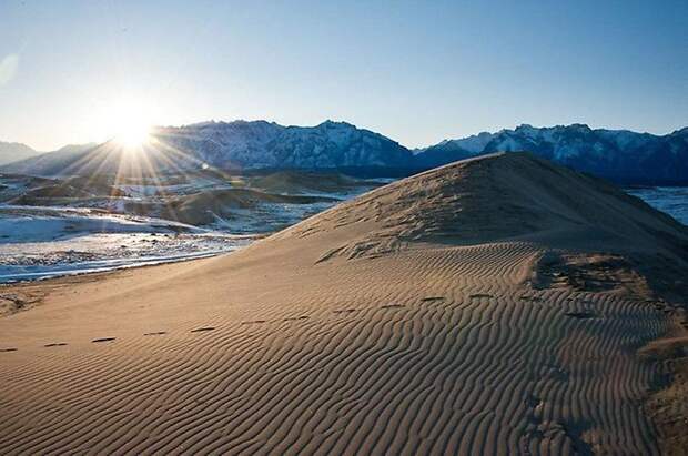 Кусочек пустыни в Сибири, окруженный белоснежными вершинами и зеленой тайгой. Чарские пески - один из претендентов на звание Визуального символа России.