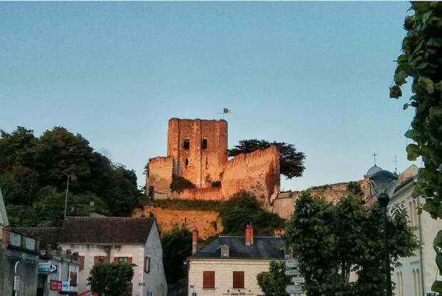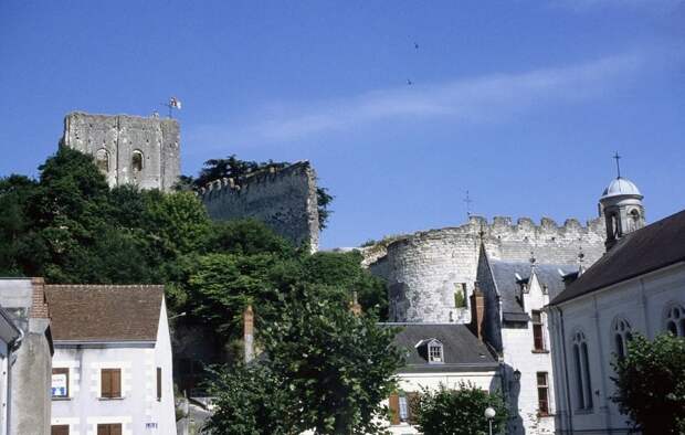 Полуразрушенный монументальный замок. Исторический памятник Франции.