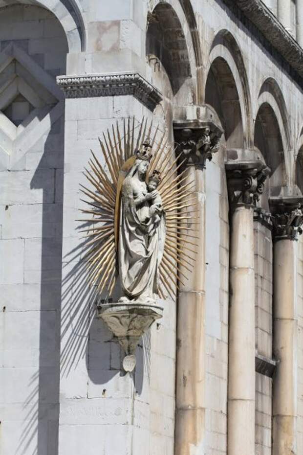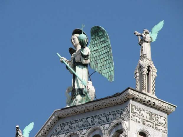 Собор Сан-Микеле с фигурой святого Михаила (покровителя царствующих), побеждающего дракона, построен на древнем римском форуме.