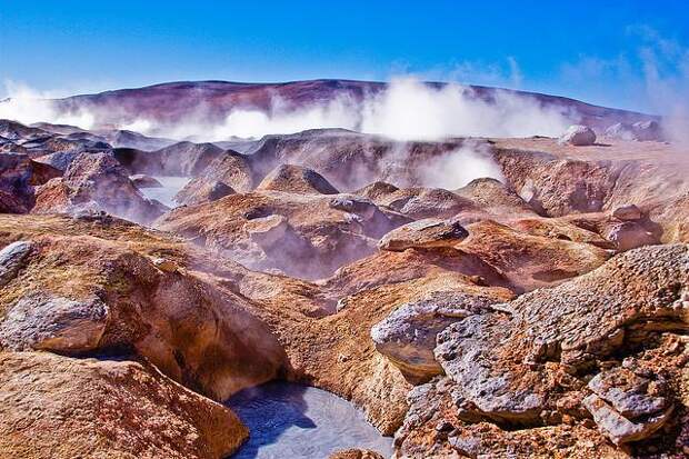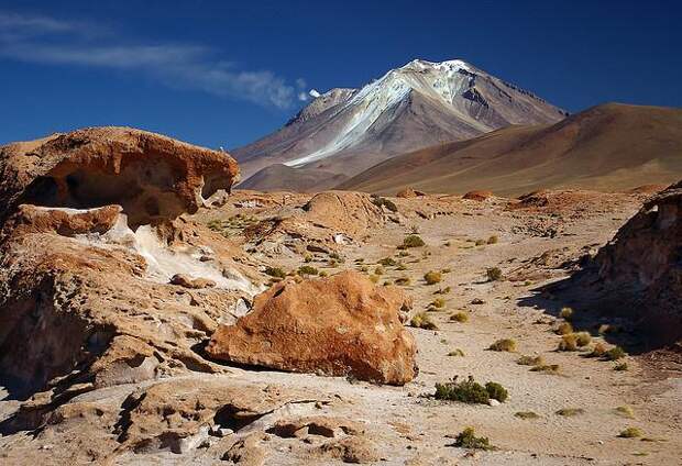 Плато Альтиплано (Южная Америка), на территории которого располагаются розовое озеро Колорадо, долина гейзеров, покрытые льдом горные вершины, поросшие колючками пустыни и уже знакомые нашим читателям озера Титикака и солончак Уюни - одно из самых удивительных мест нашей планеты!