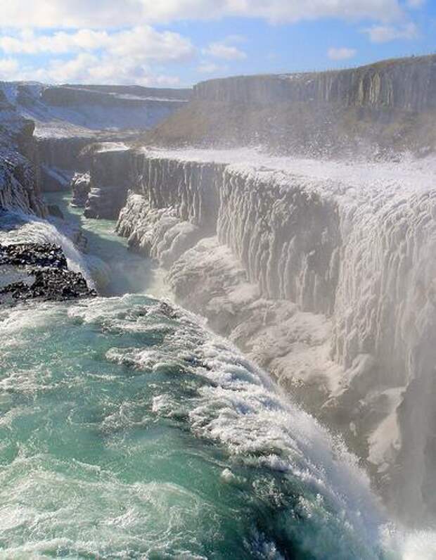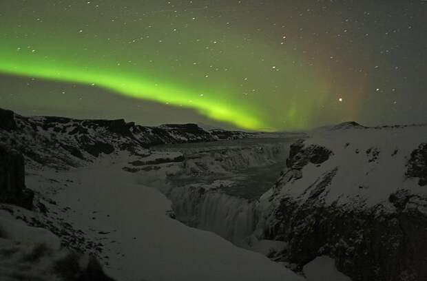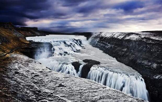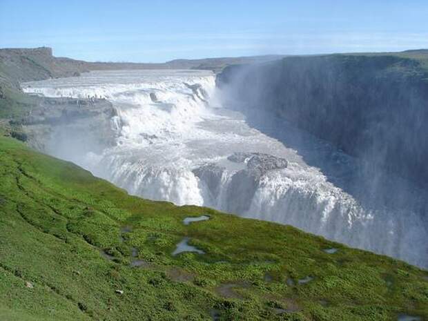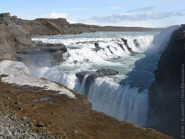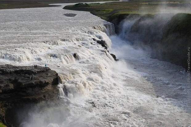 Gullfoss - еще один красавец-водопад на территории Исландии. Его мощь в прошлом веке неоднократно хотели обуздать ради выработки пресловутого электричества, но, к счастью, сохранение природного достояния страны для исландцев оказалось важнее.