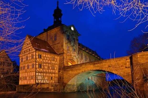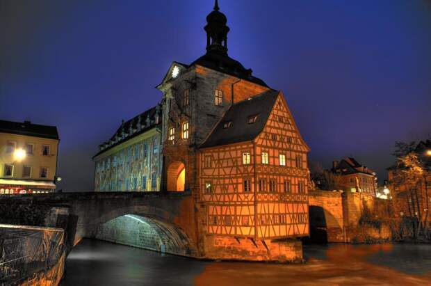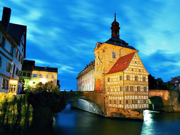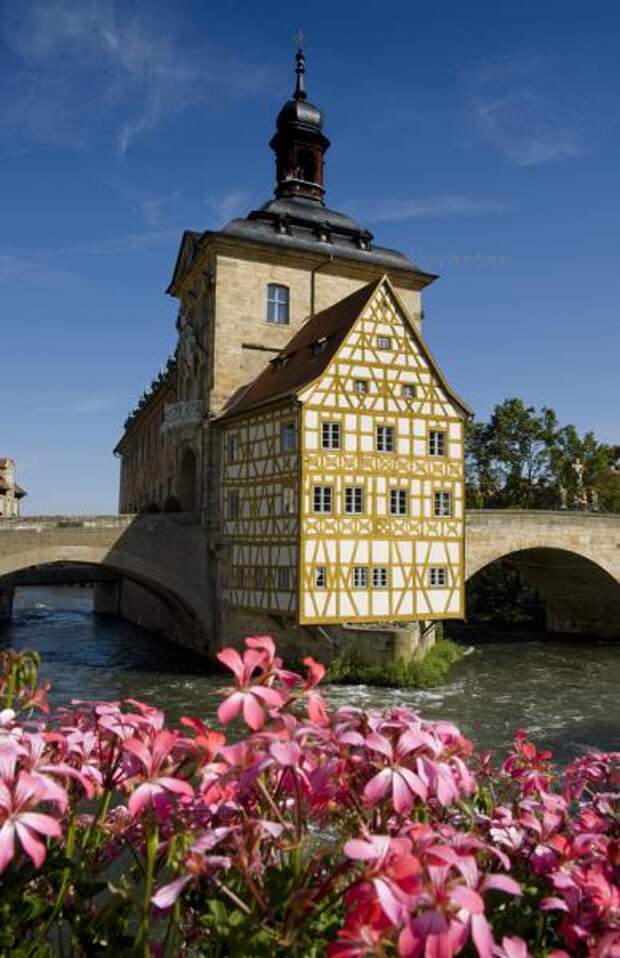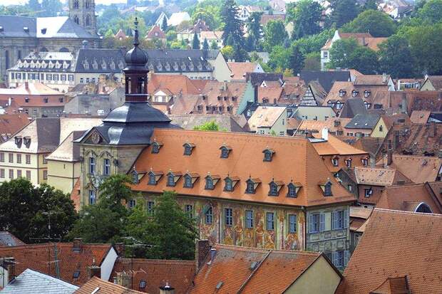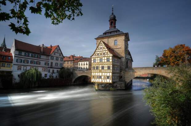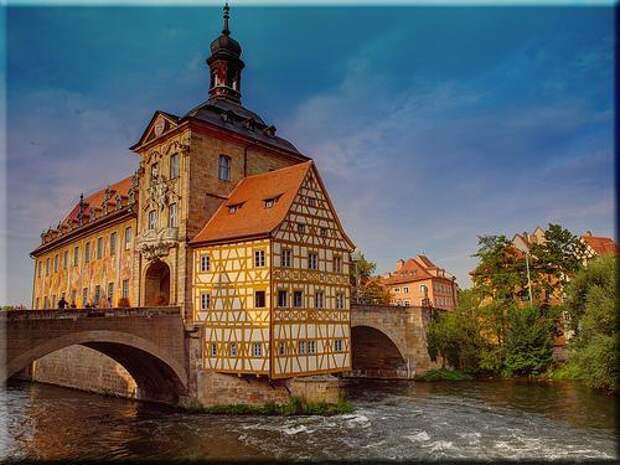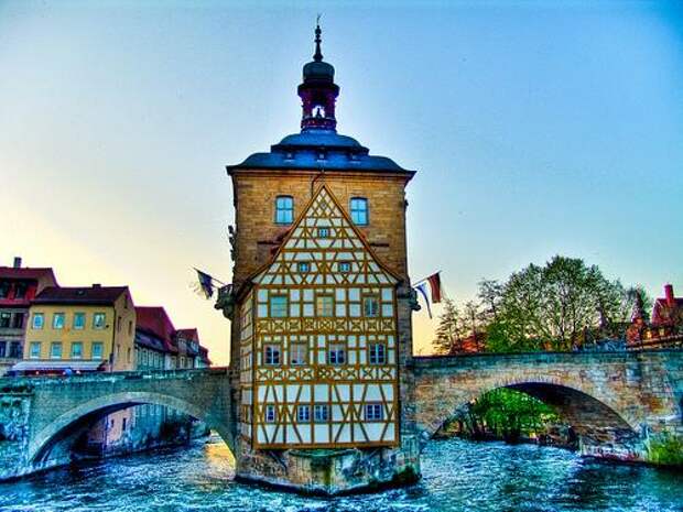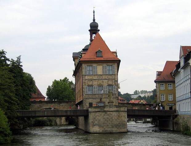 Иногда людям проще заморочиться и потратить силы на обустройство искусственного острова на нейтральной территории, чем спорить из-за того, где полагается строить административное здание. Наглядный пример - Старая ратуша Бамберга.