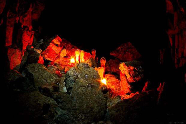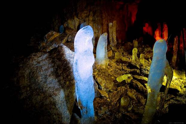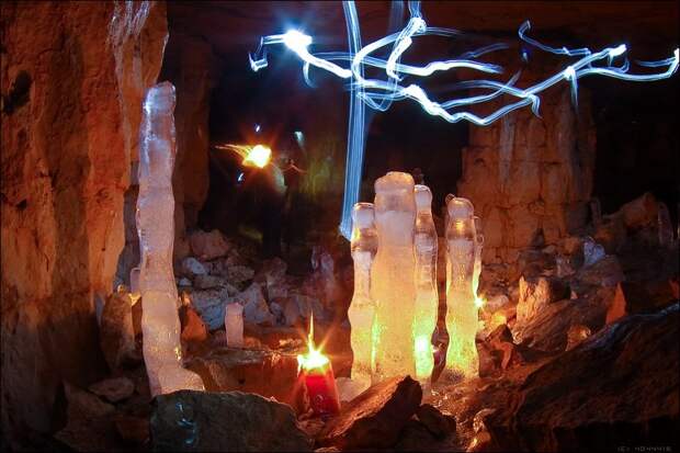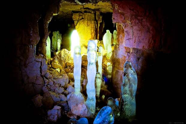 Интересные для туристов пещеры, с красивой подсветкой, есть не только за границей, но и у нас. Одна из них Ледяная пещера в районе Старицы Тверской области. Каждый год в конце зимы-начале весны она радует посетителей новыми ледовыми сталактитами и сталагмитами.