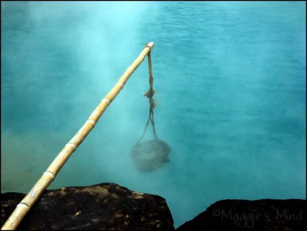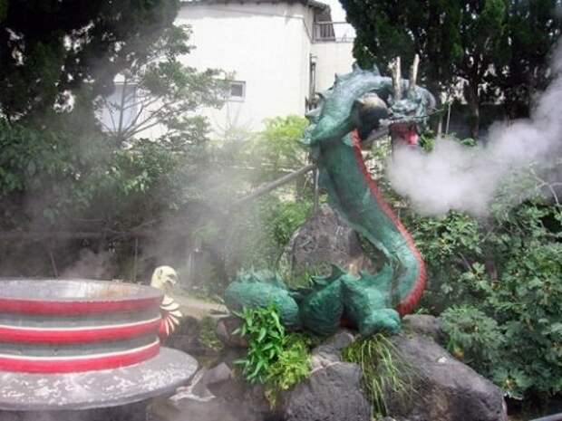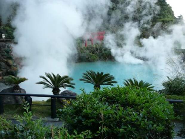 Беппу - место, где точно не должно быть проблем с отоплением - здесь повсюду горячие источники! Что особенно примечательно, тут представлены источники на любой вкус и цвет - голубые и красные, с минеральной водой и грязью, образующие пар и выстреливающие струями воды.