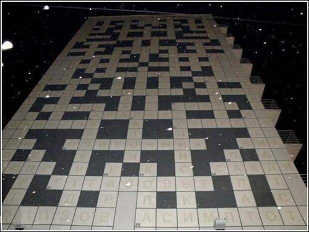 Гигантский кроссворд на стене дома - и серость "панелек" уже не кажется такой гнетущей...