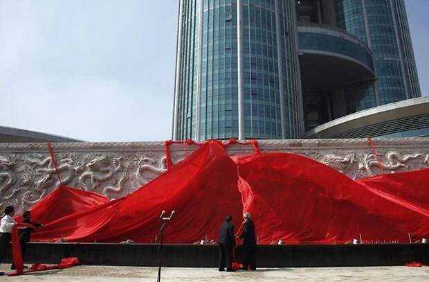 Пока наши власти и бизнесмены только думают над тем, как оживить русскую деревню и привлечь в нее туристов, в одной китайской деревне уже отгрохали отель, обошедший по высоте Эмпайр стейт билдинг! Заметили бычка на фото? Он, между прочим, из чистого золота (!