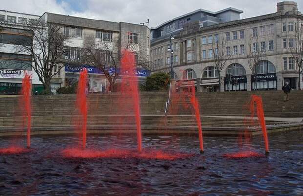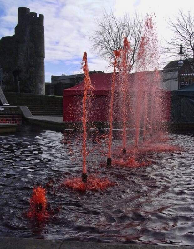 Фонтан на Замковой площади валлийского города Суонси большую часть года абсолютно ничем не примечателен. Но с первым днем весны, когда его воды по традиции окрашиваются в красный цвет, всем сразу становится понятно, почему местные называют его Кровавым фонтаном.