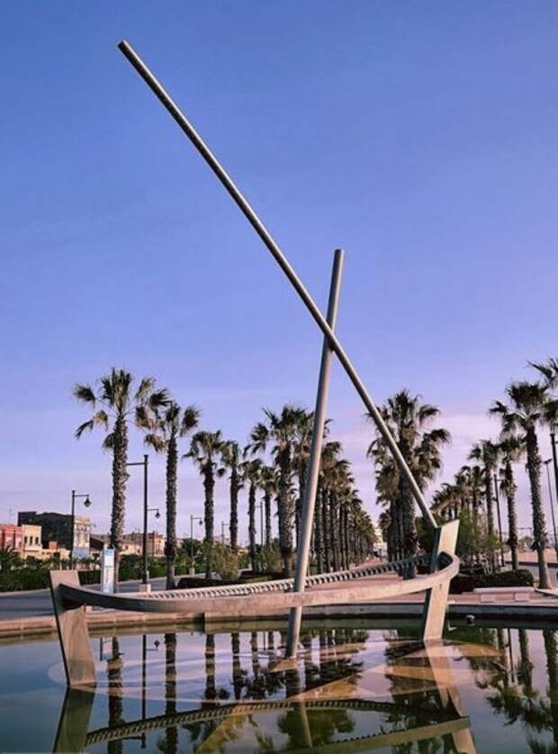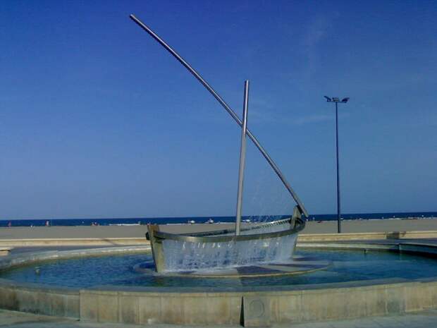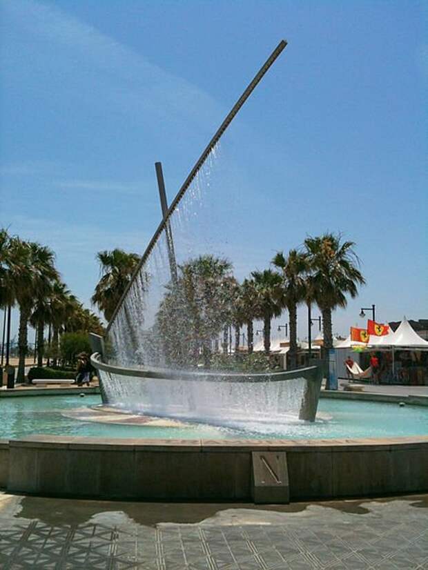 Оригинальный фонтан-лодка - украшение пляжа Мальваросса в Валенсии.